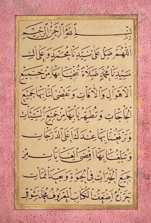 Allahümme salli ‘alâ seyyidinâ Muhammedin ve ‘alâ âli seyyidinâ Muhammedin salâten tüncînâ bihâ min cemî’il ehvâli vel âfât,